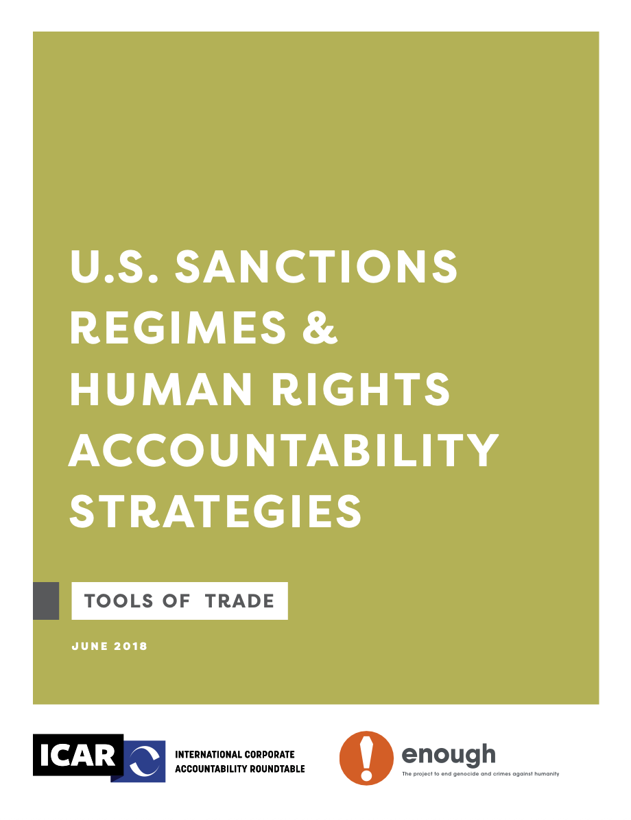 In this paper, “Tools of Trade: U.S. Sanctions Regimes and Human Rights Accountability Strategies,” the International Corporate Accountability Roundtable and Enough Project lay out the essential elements of how sanctions programs are created, implemented, and enforced. Specifically, the paper details of the legal authorities underlying sanctions, the agencies involved, and the approaches to implementation that have proved most effective.