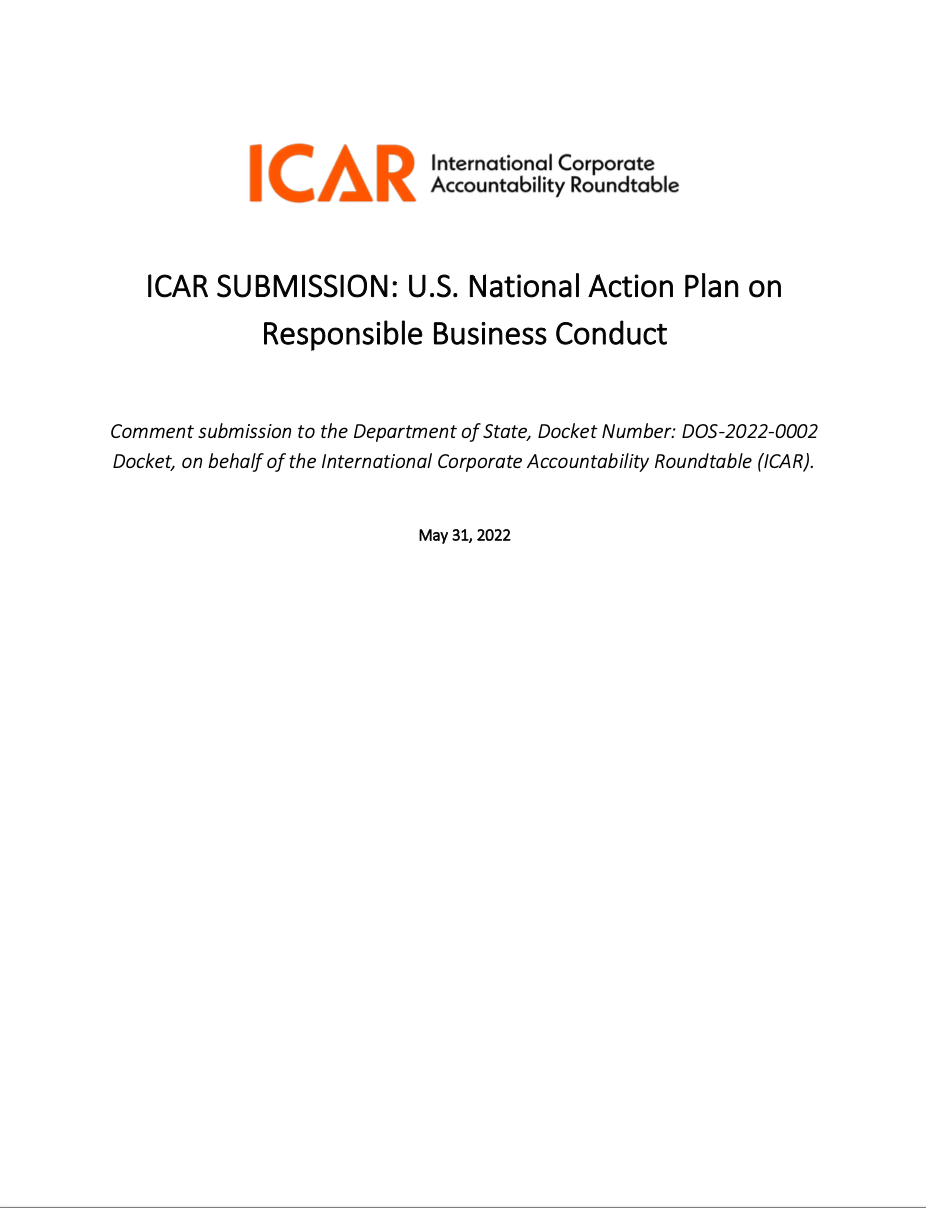 ICAR is pleased to share our final comment and recommendations for the revised United States National Action Plan (NAP) on Responsible Business Conduct.